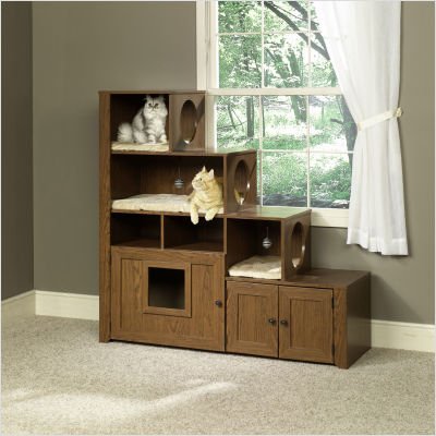 9430 Features: -Spacious pet play/sitting area. -Large door with pet access disguises storage house for litter pan. -Additional storage at the back of double doors. -Holds litter pans up to 26'' x 16 ''. -Hanging toy included. -Dimensions: fifty two.5'' H x fifty two.5'' W x 18.75'' D.. ... Read more Pet Bookcase Climber
